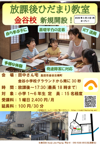 2026年3月2日(月) 放課後ひだまり教室金谷校新規開設します!