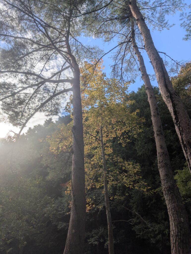静岡県の11月初旬は平野部で紅葉が始まった頃。日中は20℃、夜は12℃くらいでした。