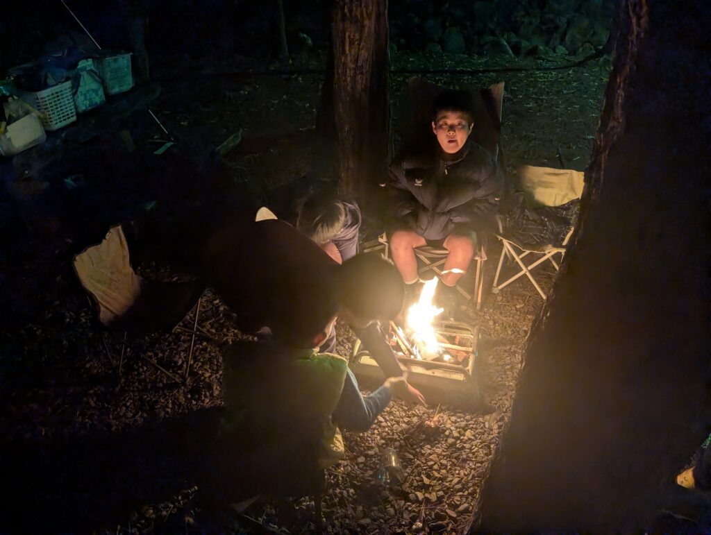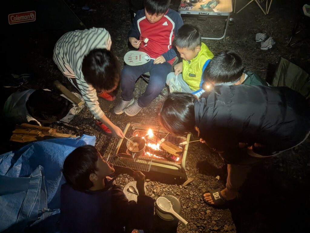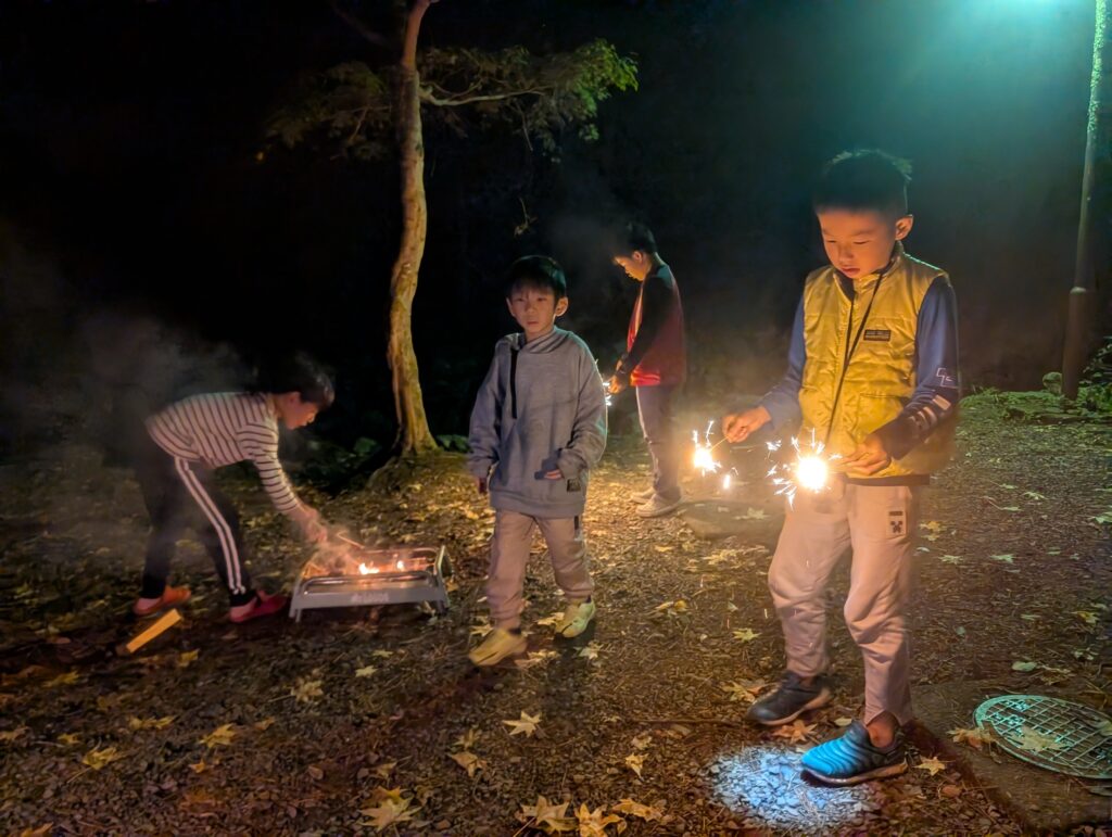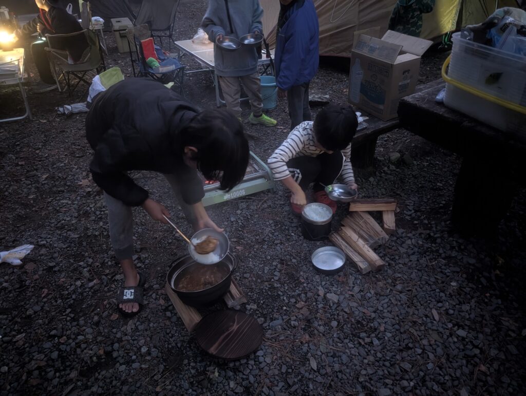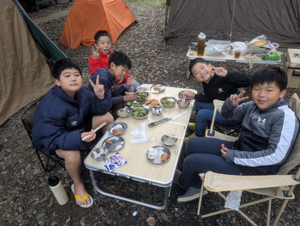 この日は早い子で22時頃、遅い子で23:30頃に就寝しました。3歳の子もお兄ちゃんたちというよりは、小学2年生のお友達と一緒にテントで就寝しました。