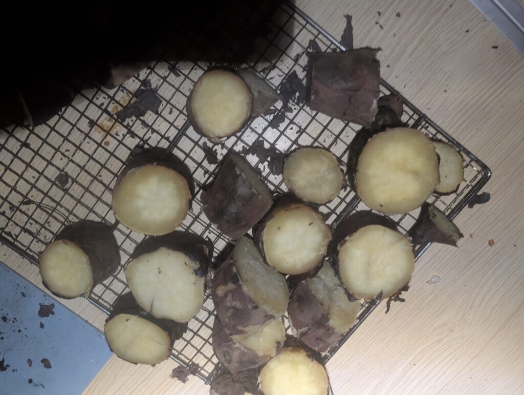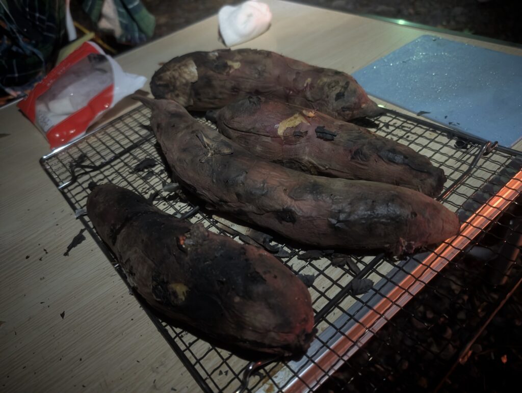 Mさん宅からいただいたサツマイモが炭火で焼けました!