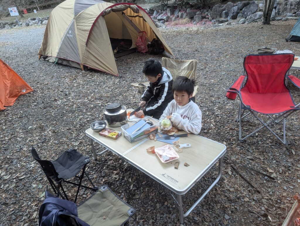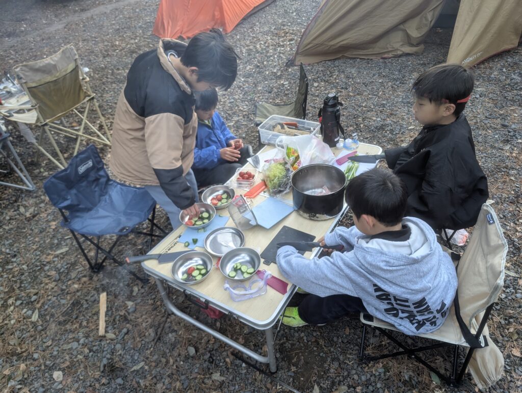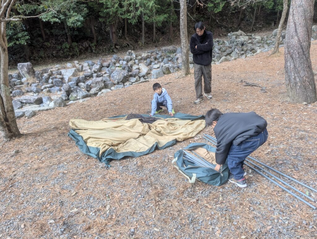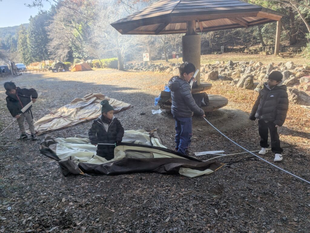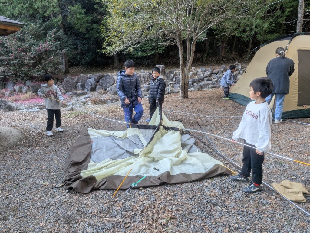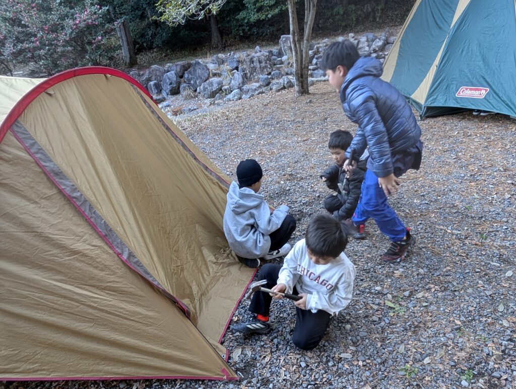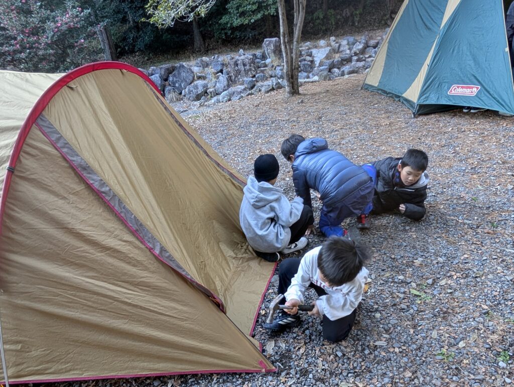 そう。テント設営も子どもたちで。
