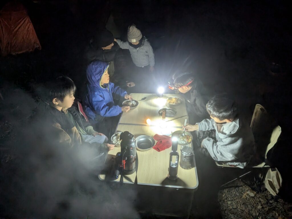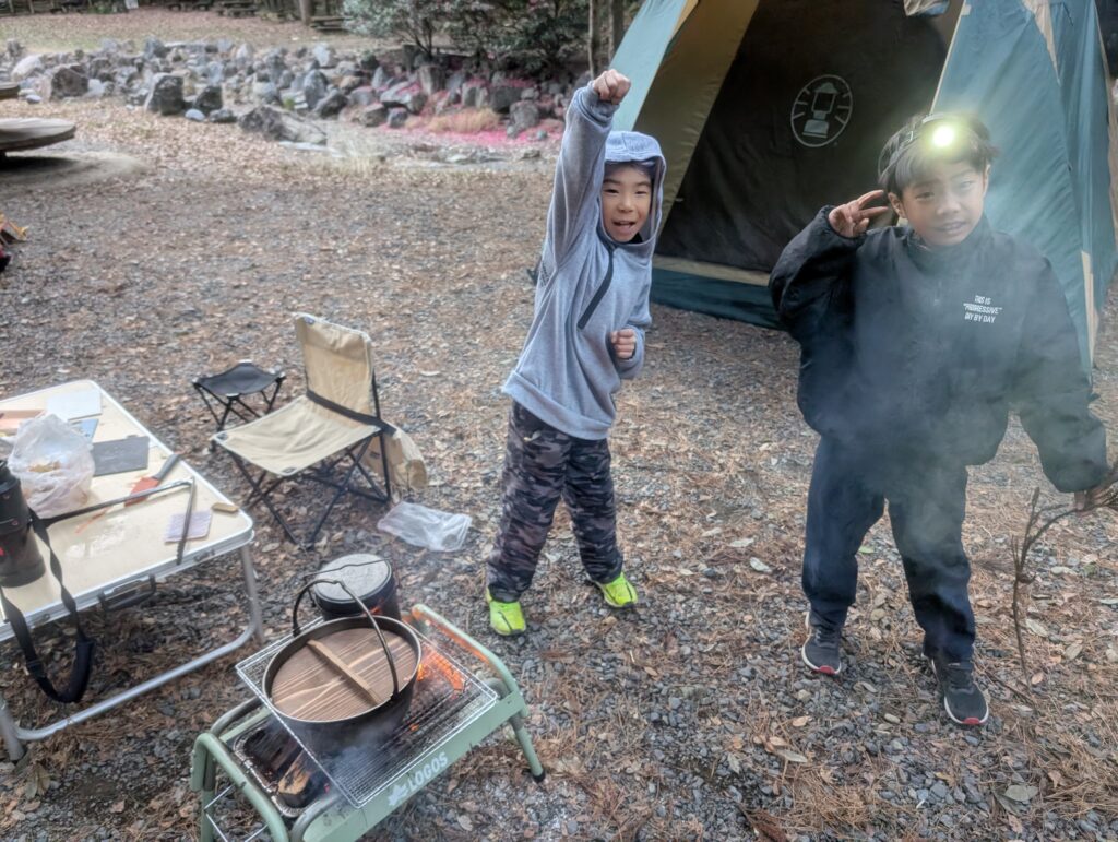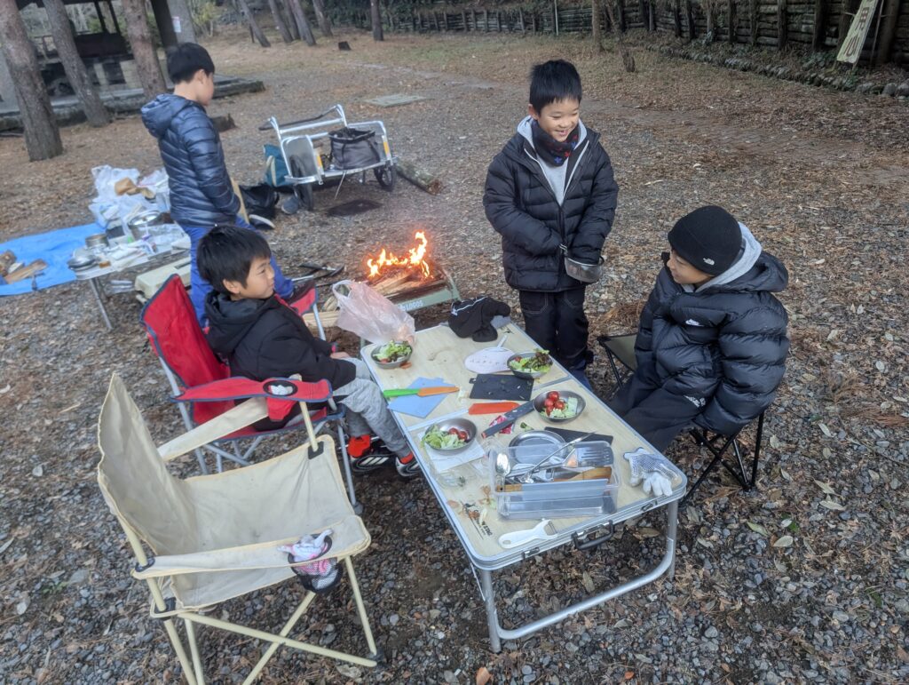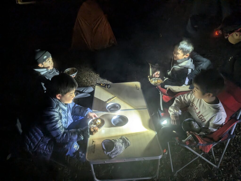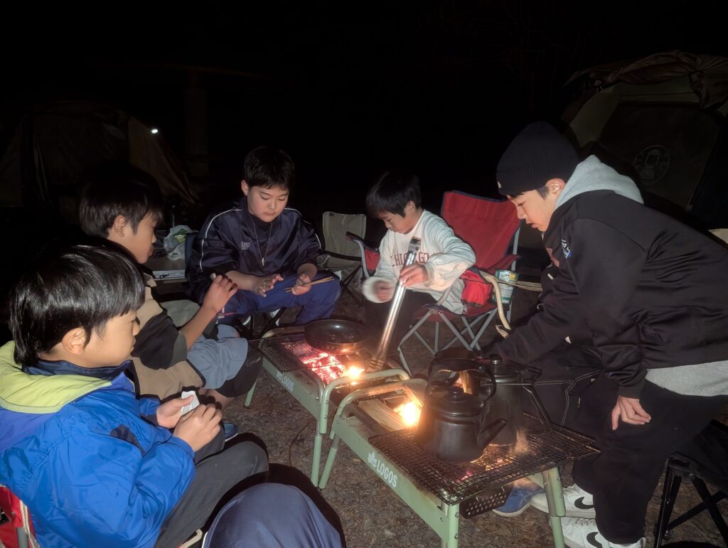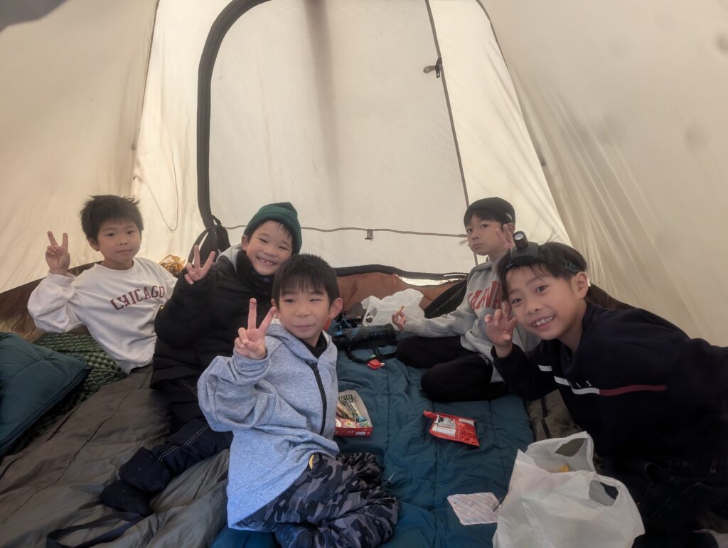 このキャンプで子どもたちが何を学んだのか?それはわかりませんが、寒い屋外で焚き火をしながら楽しく過ごし、テントで一晩寝られたことが自信になってくれたらと思います。