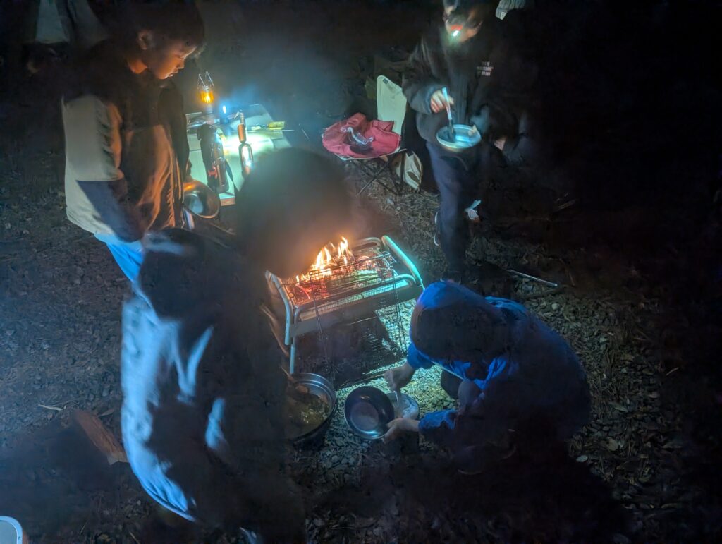 その後も焚き火をしに外に出たり、テントの中に戻ったりしてワイワイと楽しく過ごしました。