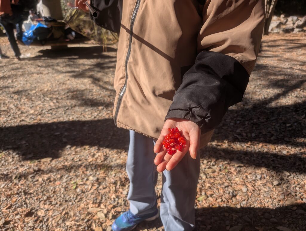「野イチゴ見つけた。ほら、こんなにたくさん」